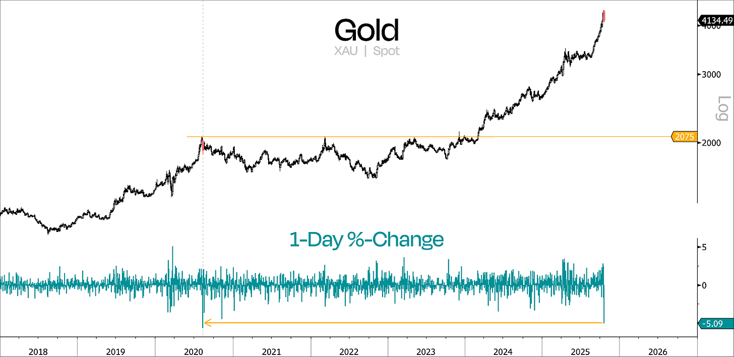 Last week we flagged silver’s extreme RSI levels as a sign that a pullback was coming. Seems we may have been on to something. Both gold and silver sold off hard last week.