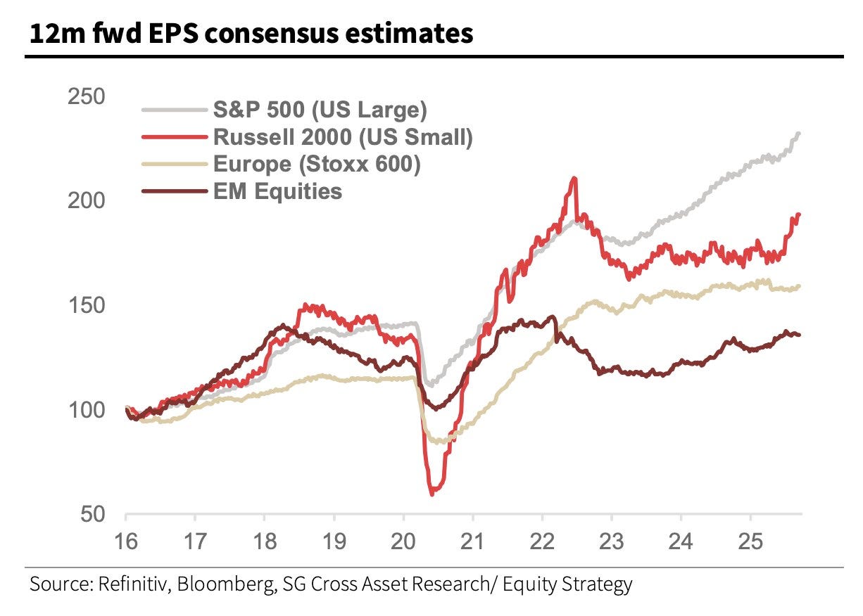 Despite the headlines, corporate fundamentals are still trending higher. Leadership is broadening beyond large caps, a healthy sign for the market, with improving EPS trends in both the S&P 500 and the Russell 2000.