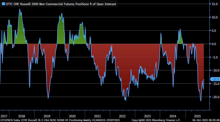 Large speculators remain net short equities, a position rarely seen before deep drawdowns. While some speculative activity at the top end of the market does look frothy, there’s still plenty of skepticism to fuel future gains. If trade war rhetoric cools and sentiment improves, those shorts could turn into powerful buying momentum.