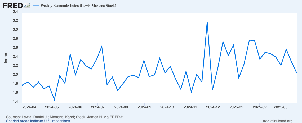 The Weekly Economic Index is a measure of real economic activity, combining ten daily and weekly indicators covering consumer behavior, the labor market, and production, and scaled to the four-quarter GDP growth rate.