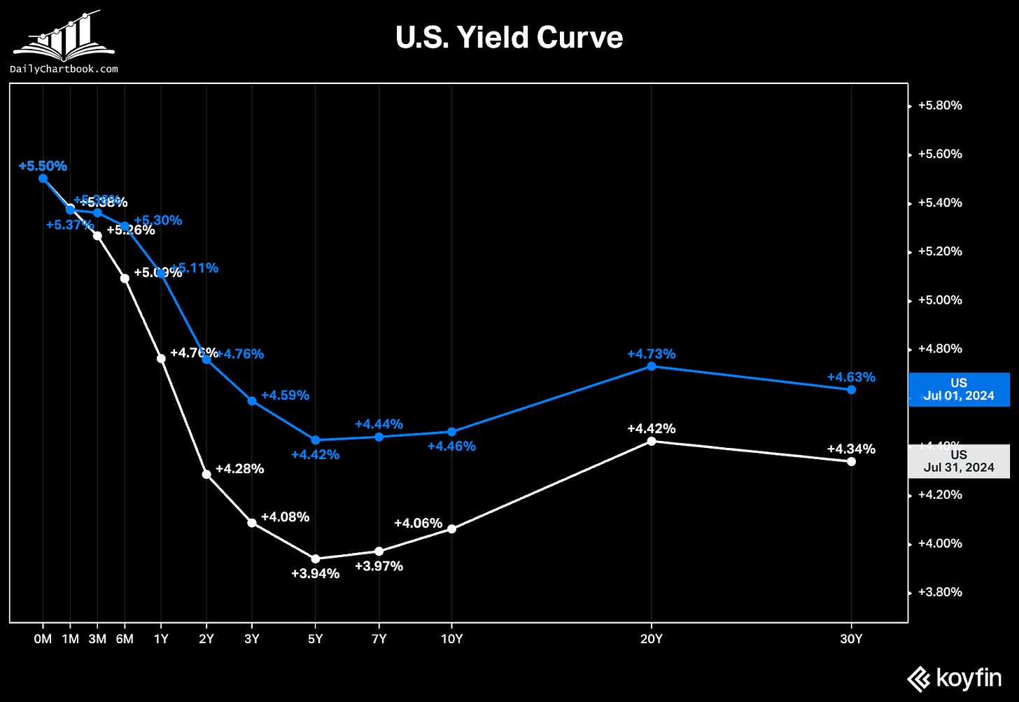 Rates across the yield curve have been falling throughout July.