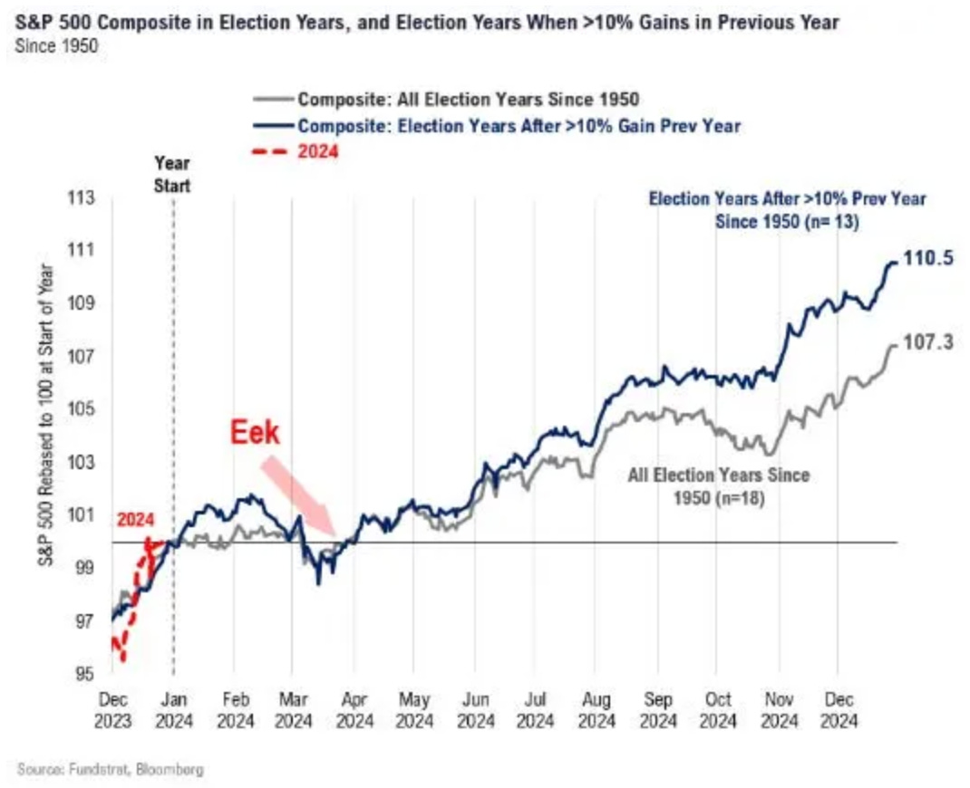 Election years are overwhelmingly positive for stocks. But Q1 in particular is very weak. With sentiment at a bullish extreme and technicals overextended, we begin the year on a cautious note.