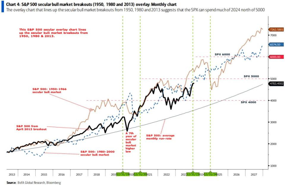 A secular bull market roadmap suggests the current stock rally could last through 2033, Bank of America says (Yahoo Finance)