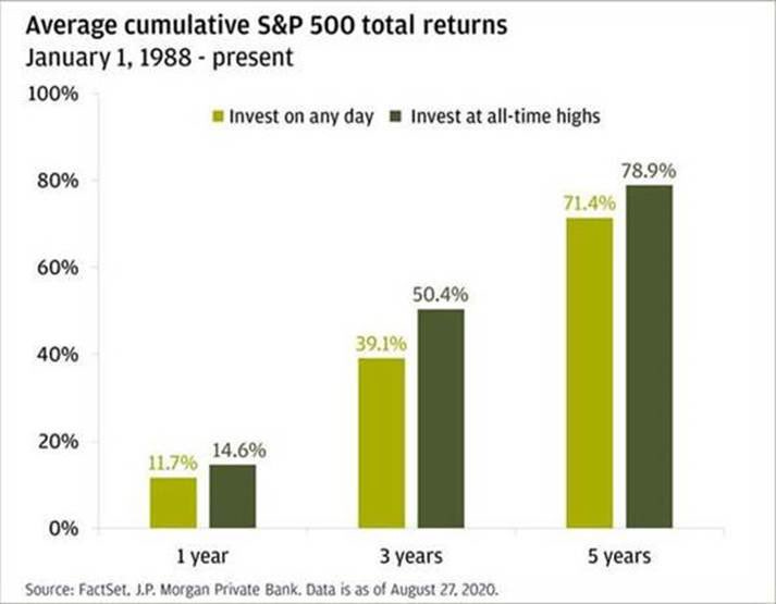 Money invested when the market is at all time highs has outperformed money invested on any given day. (@PeterMallouk)