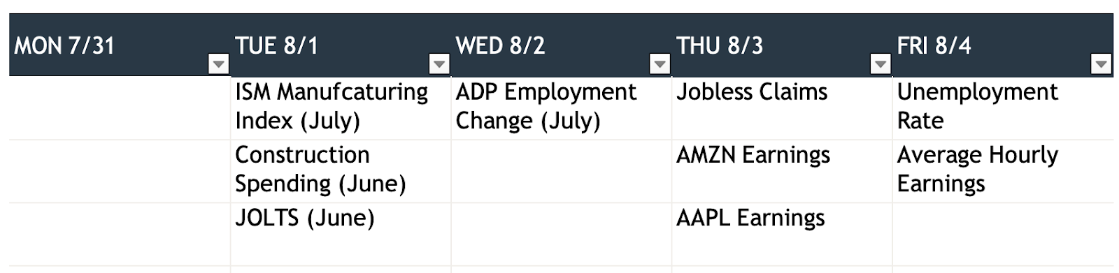 Another solid week of gains for the S&P 500, Russell 2000 and Nasdaq, mostly driven by earnings and solid GDP growth. Last week, out of the 159 S&P 500 companies that reported Q2 results, 136 beat consensus EPS expectations. We did see a spike in volatility on Thursday, but not for the reason we expected. It was mostly driven by a surge in treasury yields after the BOJ announced a change to its yield curve control policy.