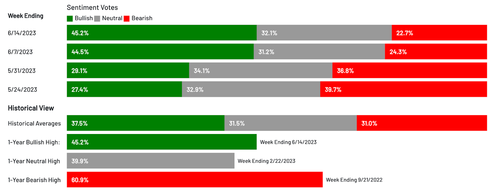 Bullish sentiment in the AAII Investor Sentiment Survey has been above average for 2 weeks in a row, while bearish sentiment is at its lowest level since July 2021. Extreme bullish sentiment suggests this market is overdue for a correction.