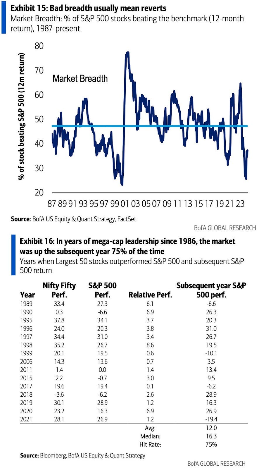 While market breadth has been weak, there is some evidence to support a broader-based rally going forward. In years when the largest stocks have led, the market closed the following year higher 75% of the time. Yes, tech has dominated recently, but nothing lasts forever in the stock market. History suggests overlooked areas of the market are set to fuel future gains.
