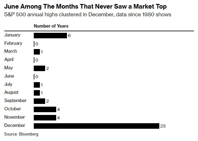 Last week we flagged some technical signs of a stalling rally, and that theme continued to play out this week. But we continue to believe this is nothing more than short term consolidation. Stocks almost never peak in June. And while this year hasn’t exactly followed historical seasonality, there are very few catalysts over the next month that would drive a significant pullback in stocks.