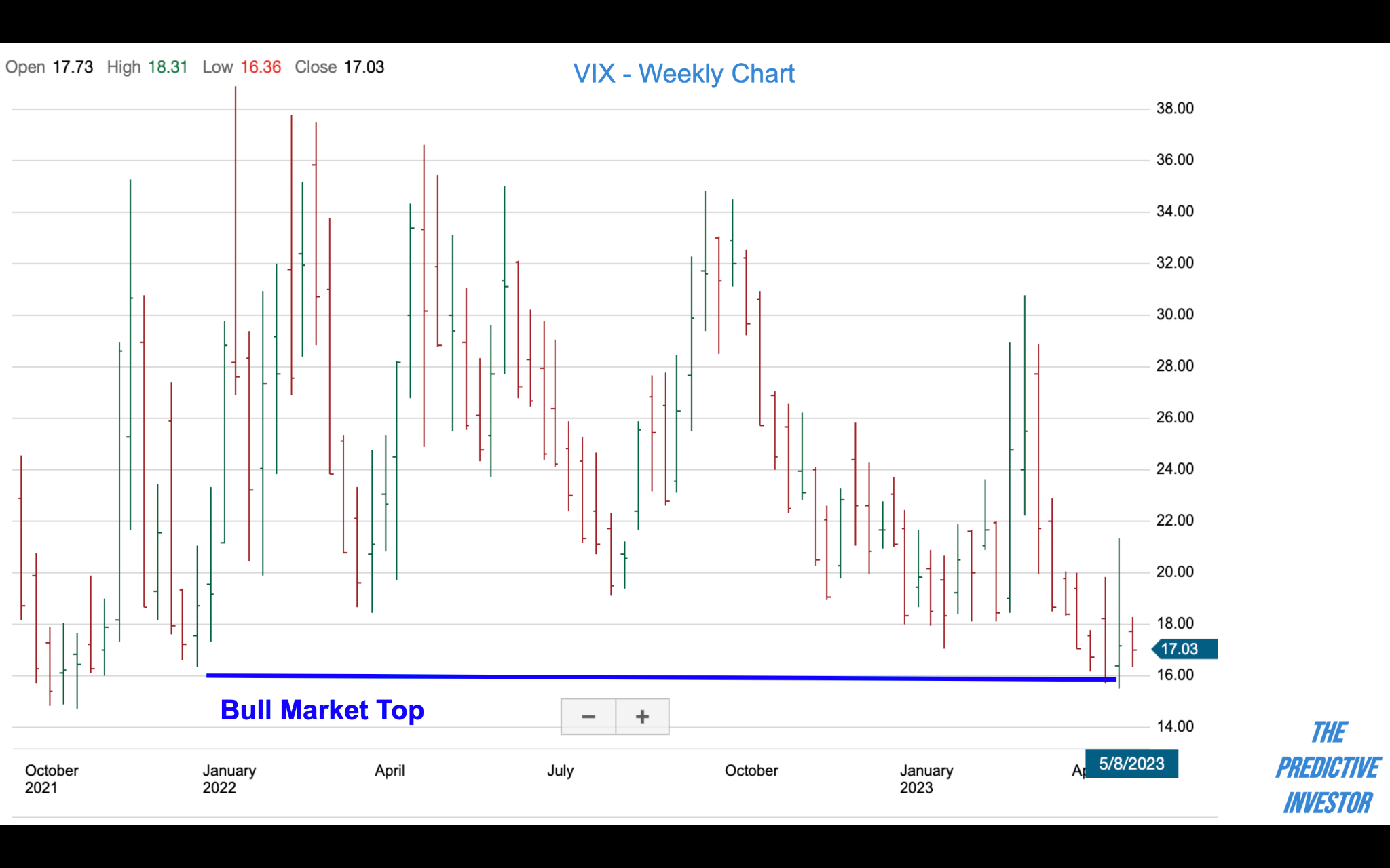 The last time the U.S. came close to a default was back in 2011, and the VIX hit a high of 48 that summer as a deal was finalized just before the deadline. Complacency combined with bearish divergence in the market indexes leads us to believe there’s more risk to the downside at this point.