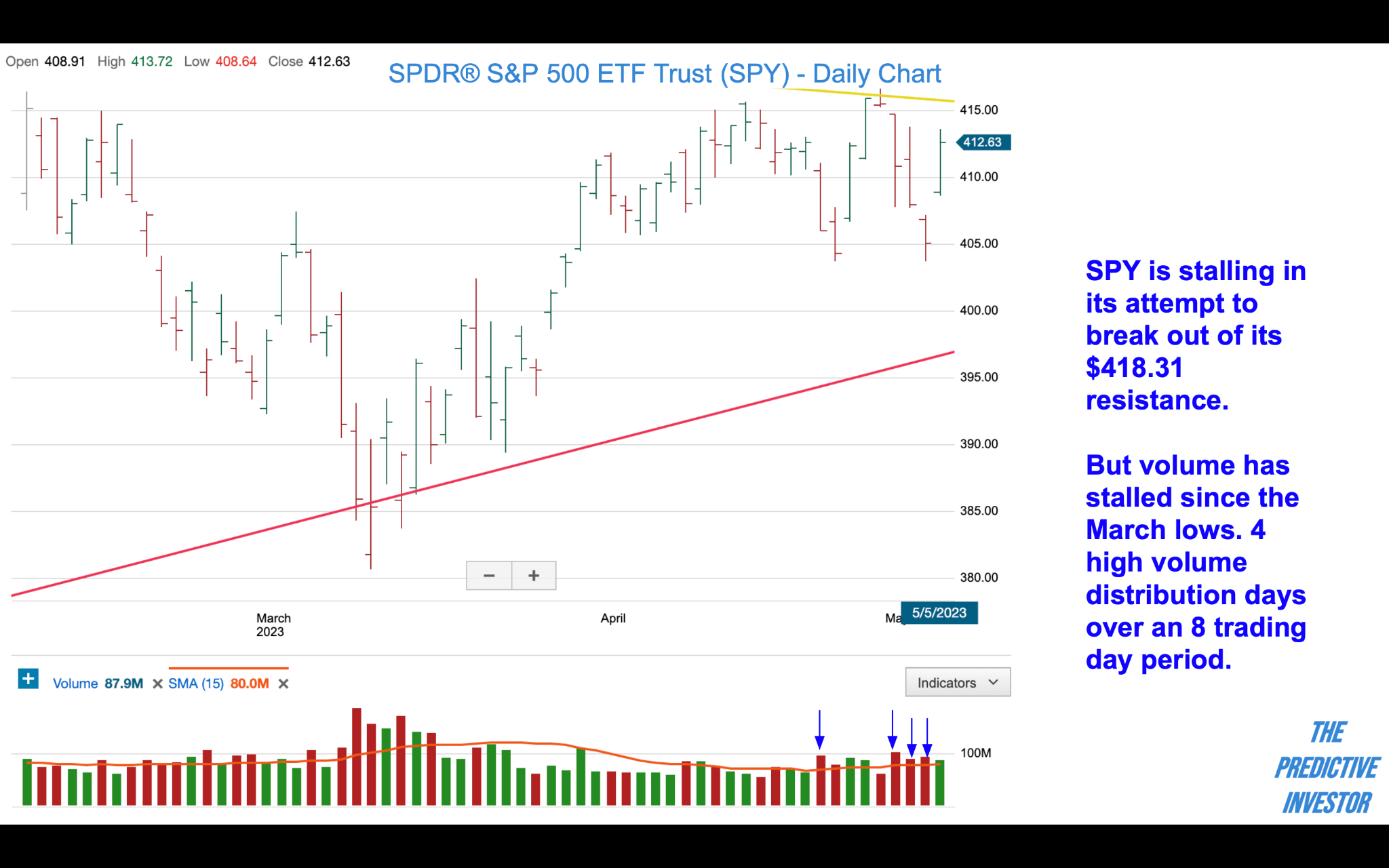 The Wilshire 5000, one of the broadest measures of U.S. stock performance, has essentially been flat since January. This is no doubt frustrating for traders, who prefer the market to pick a direction. The way this frustration manifests itself in the public discourse is wildly conflicting viewpoints on what’s ahead for stocks and the economy, as the bulls and bears each try to get the market on their side. The only leading indicators of direction are price and volume, and this is where we’ll focus our energy on.