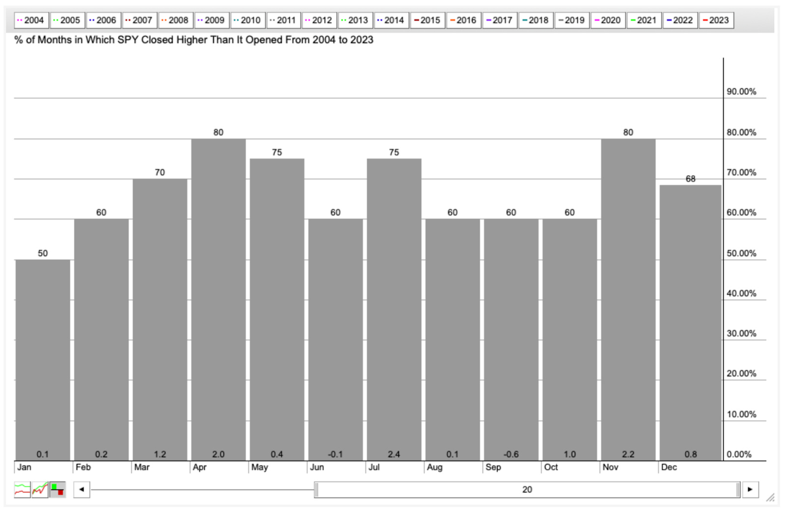 But the market was already anticipating these developments, which we noted last week. Stocks were oversold and bonds were in the process of bottoming, which we predicted would spur a rally in stocks. We’re also entering a month that historically has been very positive for stocks: over the last 20 years stocks were positive in November 80% of the time (see chart below).