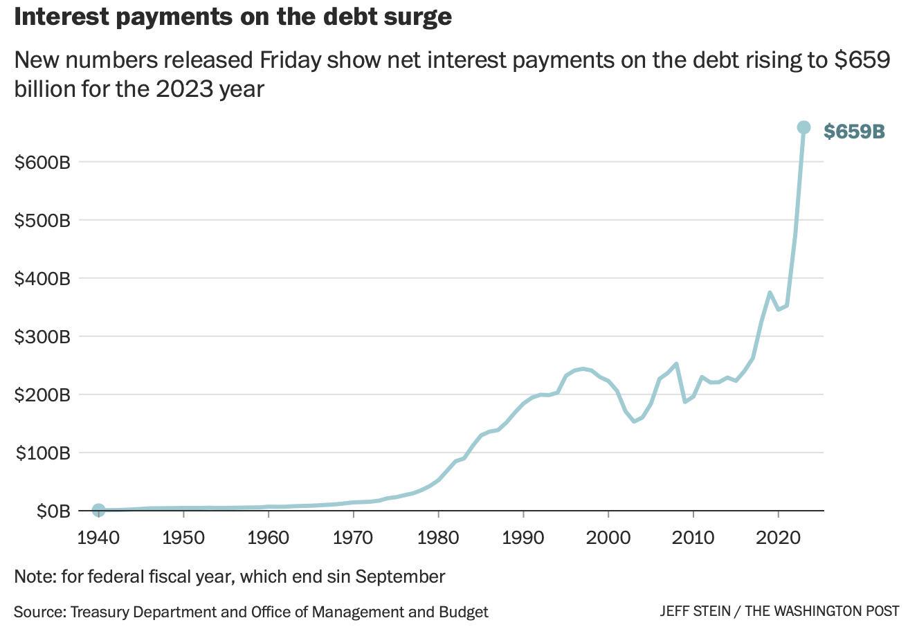 U.S. payments on debt spike to $659 billion, nearly doubling in two years