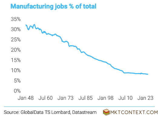 ISM manufacturing data came in weak, but has been in contractionary territory for 20 of the last 21 months. Manufacturing is only about 12% of GDP, and represents a small portion of the overall jobs market.
