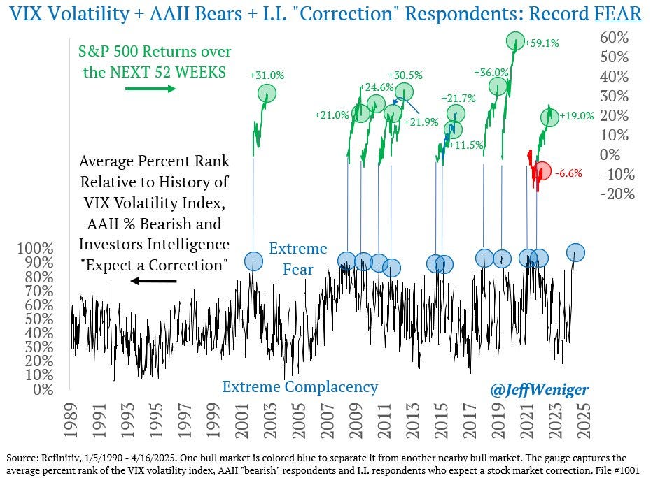 I continue to believe that the markets will surge higher as soon as there’s clarity around trade policy. The best thing you can do now is to position your portfolio accordingly. History shows the rewards are far greater for investors who buy during times of extreme fear than for those who wait until it feels safe.