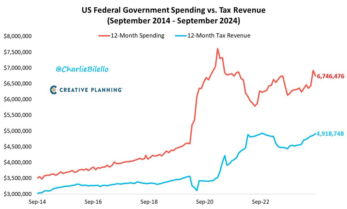 The gap between spending and tax receipts continues to widen in the wrong direction, and the expected continuation of tax cuts will increase deficits further.