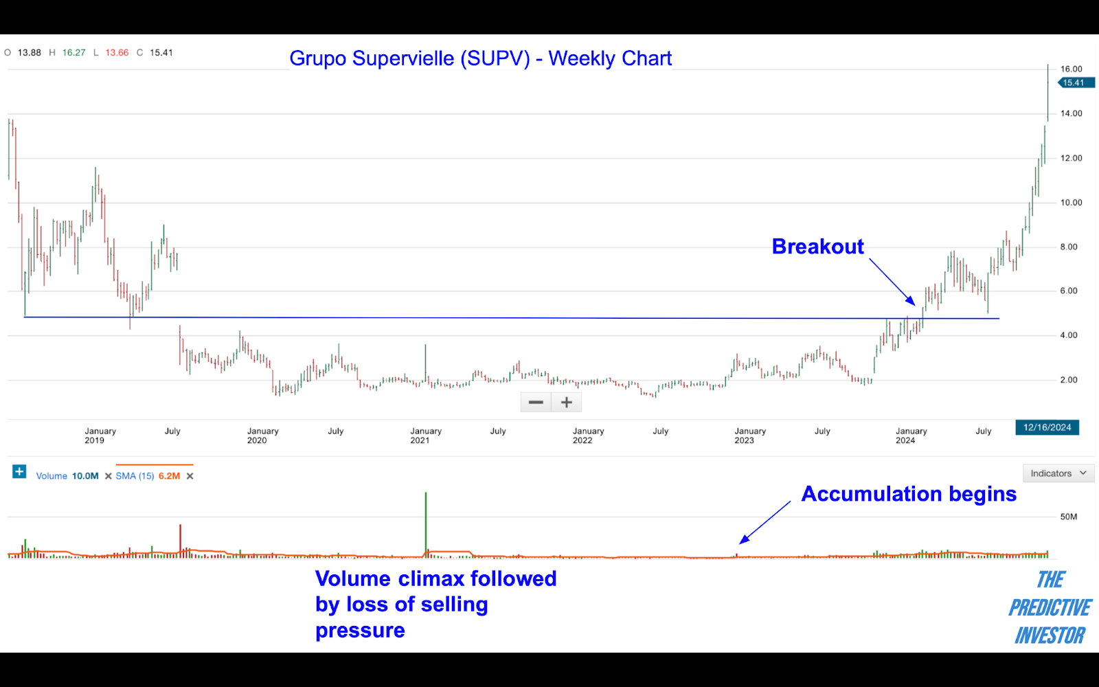 Last week wasn’t all bad for our portfolio. SUPV 0.00%↑ continues to charge higher, up 11% for the week vs. a 2% loss for the S&P 500. We’re now sitting on a 110% gain in just 16 weeks.