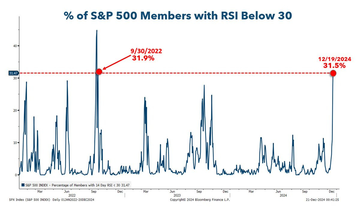 Last week the S&P 500 had the highest number of stocks with oversold RSI readings since September 2022.