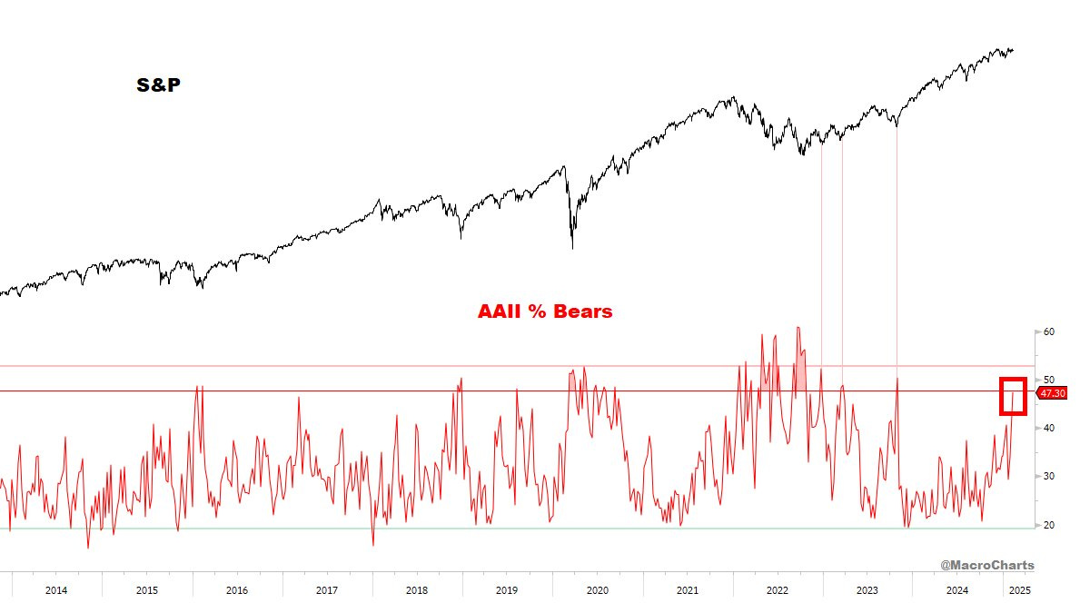 Meanwhile, the latest AAII survey came in with nearly half of investors indicating they’re bearish on stocks.