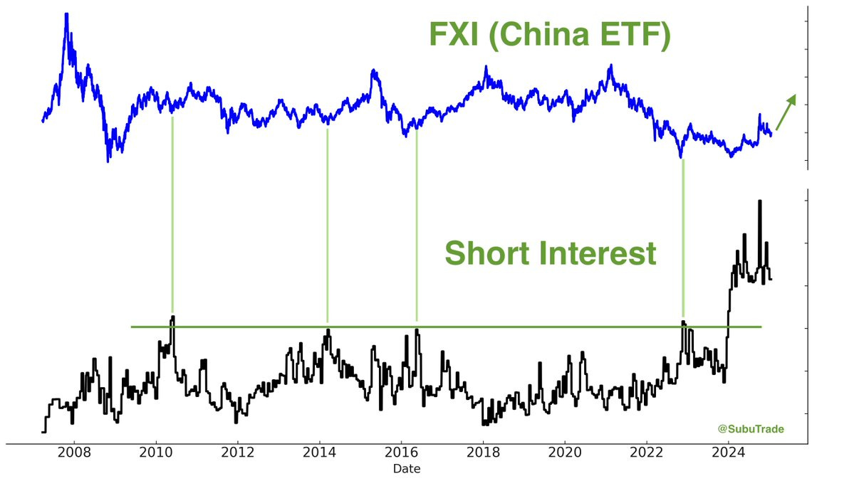 Despite many economic challenges, Chinese stocks have reversed their downward trend to the upside. And yet short interest remains at record levels. It seems we’ve reached peak pessimism.