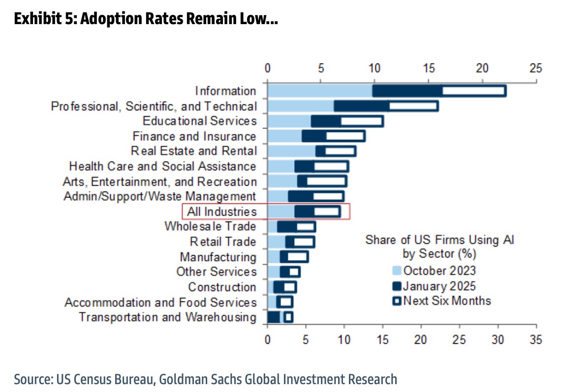 Research from Goldman Sachs shows only 6% of companies are using AI today. The upside remains tremendous.