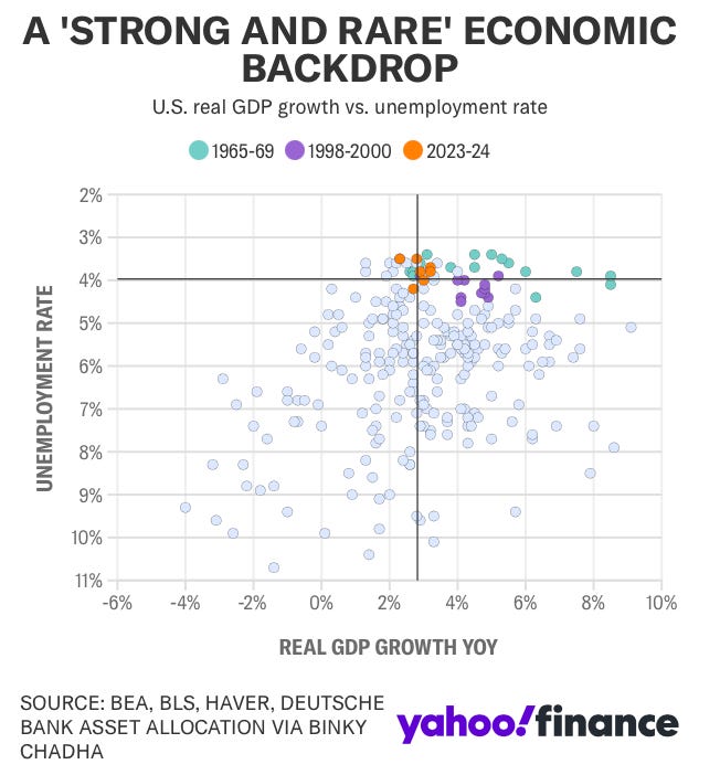 Prior periods of low unemployment and strong GDP, such as the 60s and 90s, saw very strong stock market returns.
